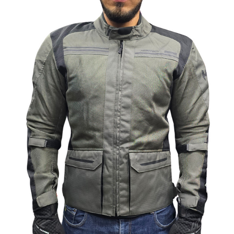 Chamarra Con protecciones Hebotech Cypher Gris Larga Mesh Impermeable