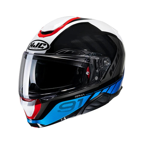 CASCO ABATIBLE HJC I91 BINA MC21 BLANCO AZUL ROJO