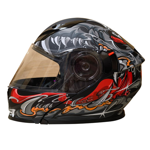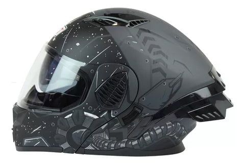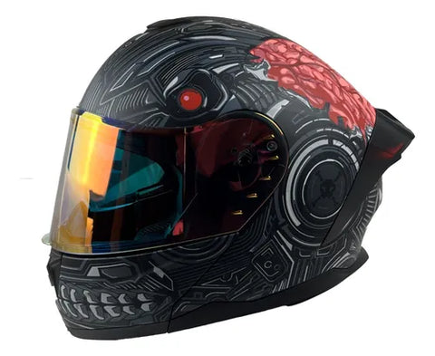 Casco Abatible Con Luz Led R7 Alfa Skull Snake