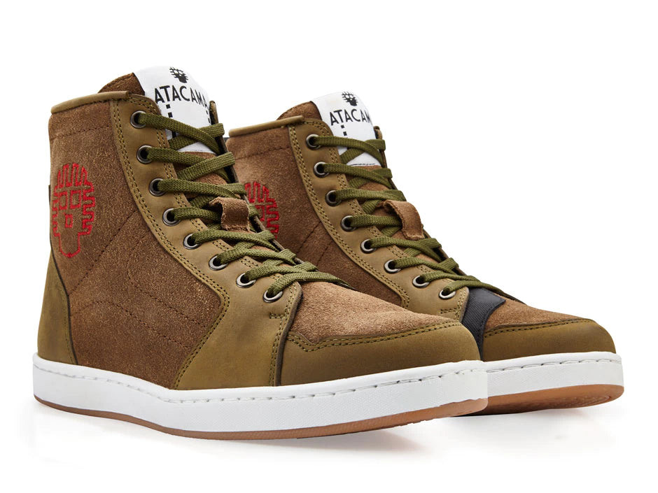 Tenis para moto urbano olivo de Piel Unisex con protecciones Atacama Fermin Gamuza
